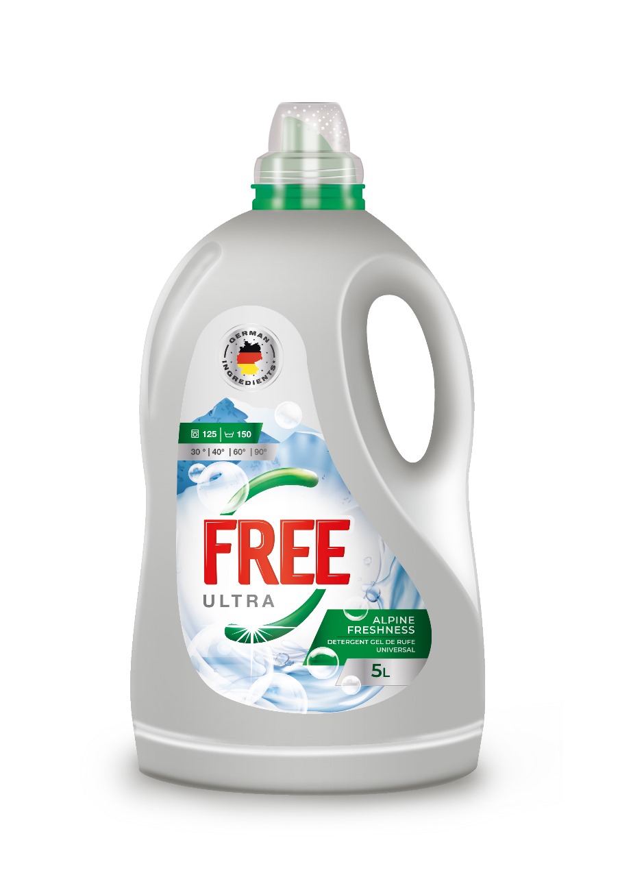 DETERGENT LICHID DE RUFE "ULTRA&FREE" ALPINE FRESHNESS UNIVERSAL " 5000 ml . 125 spalari .