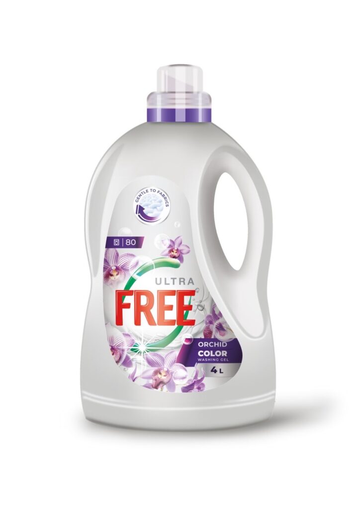 DETERGENT LICHID DE RUFE "ULTRA&FREE" ORHIDEE COLOR " 4 L . 80 spalari .